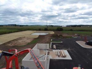 **In process: pouring floors, installing duct work, interior framing, installing windows, plumbing, electrical, site grading
