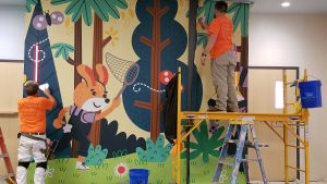 Finishes are finally coming into view. Take a look at this awesome mural by Emily Balsey.